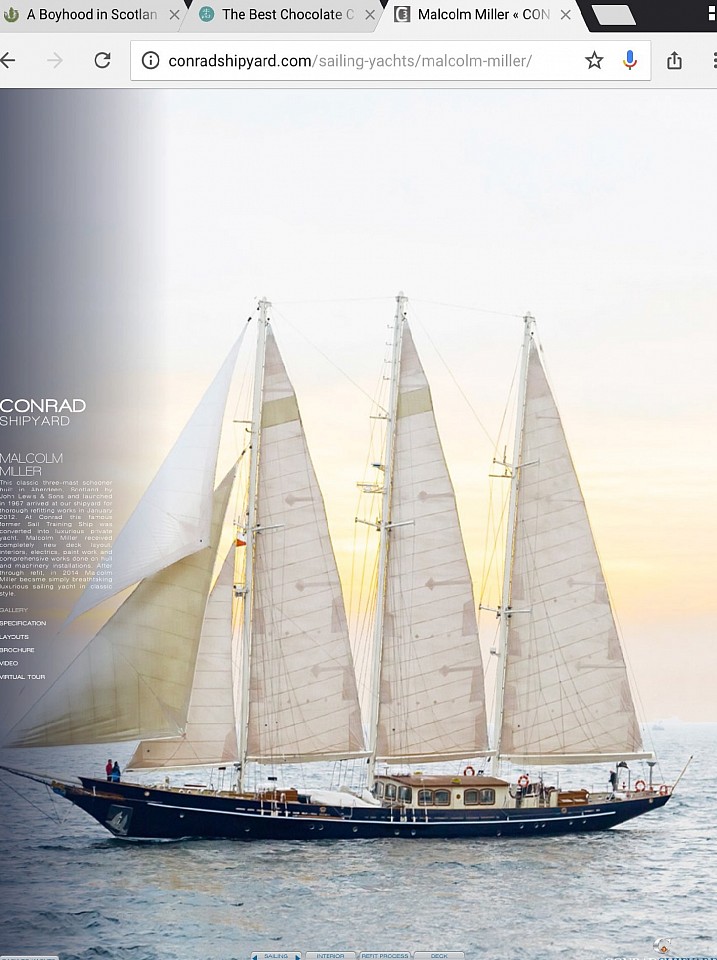 Blue sky, sunshine and no wind - quite a change from yesterday! On our way out from Strømstad we motored by The Malcolm Miller, the three master, Scottish built vessel, now a luxury yacht, and were invited aboard by the Greek, skipper owner, Ajax. Having connections to the original owners, James Miller and family, we were impressed by the refurbishing done to bring the ship more or less back to its former status. The ship is now Bermuda rigged, originally square rigged and will participate in the Tall Ships race the Baltic, with several caddets as crew.