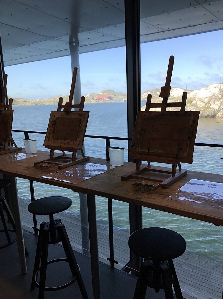 We spent an hour or so at The Scandinavian Watercolour museum which had an exhibition of the works of Arne Isacsson, one of the founders of the mueaum. Later in the day an Armada of 12-15 large sailing yachts came into the harbour and brought color to the village. The yachts were on a 14 day cruise with "veteran" sailors from USA, Canada and several European countries.