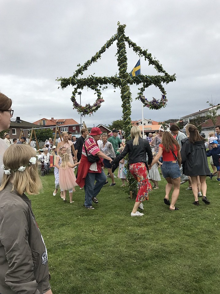 Thunder, lightning and heavy rain enticed us to spent Midsummer in a safe harbour with folk we knew. We saw the traditional song, dance and fun activities in Elløs, a relatively smal community where many are employed building sailing boats. In between heavy showers we became acqainted with the crews of the newly delivered boats, Freya, Mishelene and Isabel. One was to be transported to the Great Lakes in USA, another to the Med. and the last sailed to England. Hallberg Rassy boats are renowned worldwide. Siller Lass sailed out on Saturday morning, while Bolette and Kirsikka stayed on.