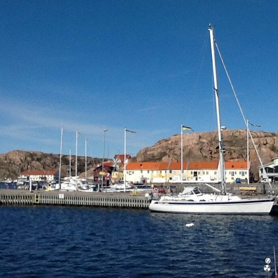 Monday morning, 27th. April chilly but sunny. We motored southwards due to lack of wind . After 4 hours we were through the Soten canal and at Røssy AS. to get our new sprayhodd and bimini fitted. The workshop is just northof Smøgenmarina.Thearea around is a complicated nest of little nooks and cranies! We'll cross over to the other side of the chanel to Kungshavn to meet friends from Scotland on Wednesday. Kongshavn is larger than the marina at Smøgen and almost aspopular.We foundalarger variety of shops here, a good enough reason to moor up. There were few visiting boats perhaps because summer hasn't really started here. One notice proclaimed summer from 15th June to 15 August!